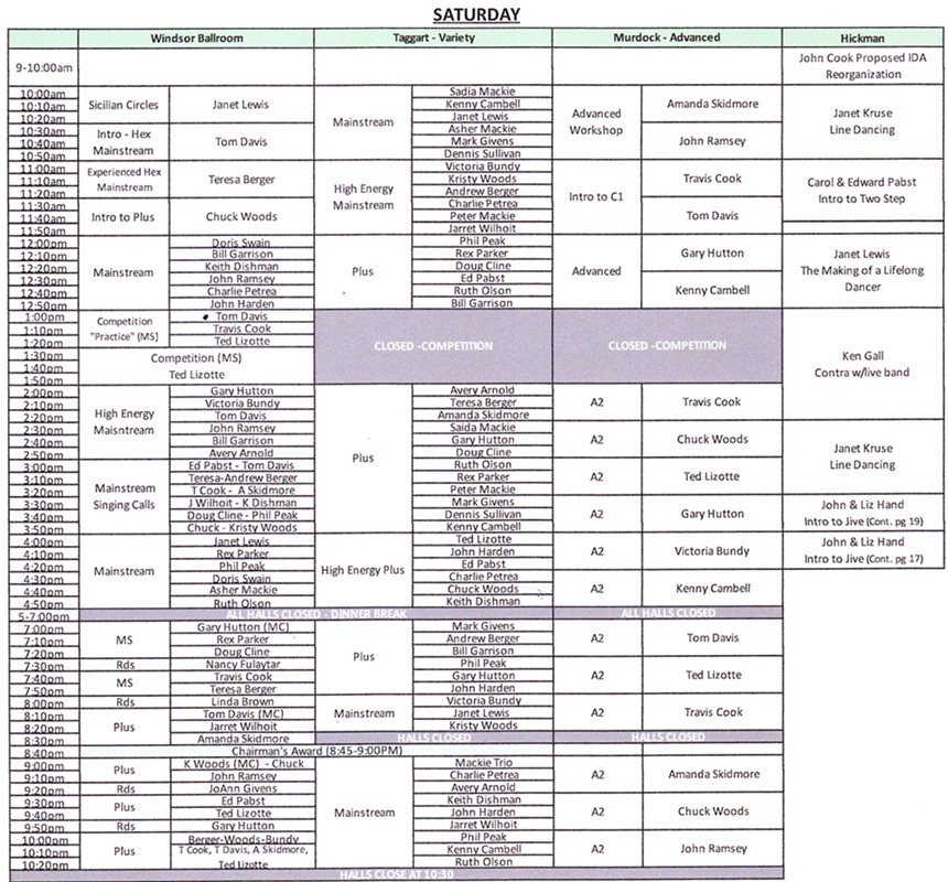 Saturday 10:00 AM to 10:30 PM Squares, Rounds, Lines, Workshops, Education, Competition, Vendors and much more!
